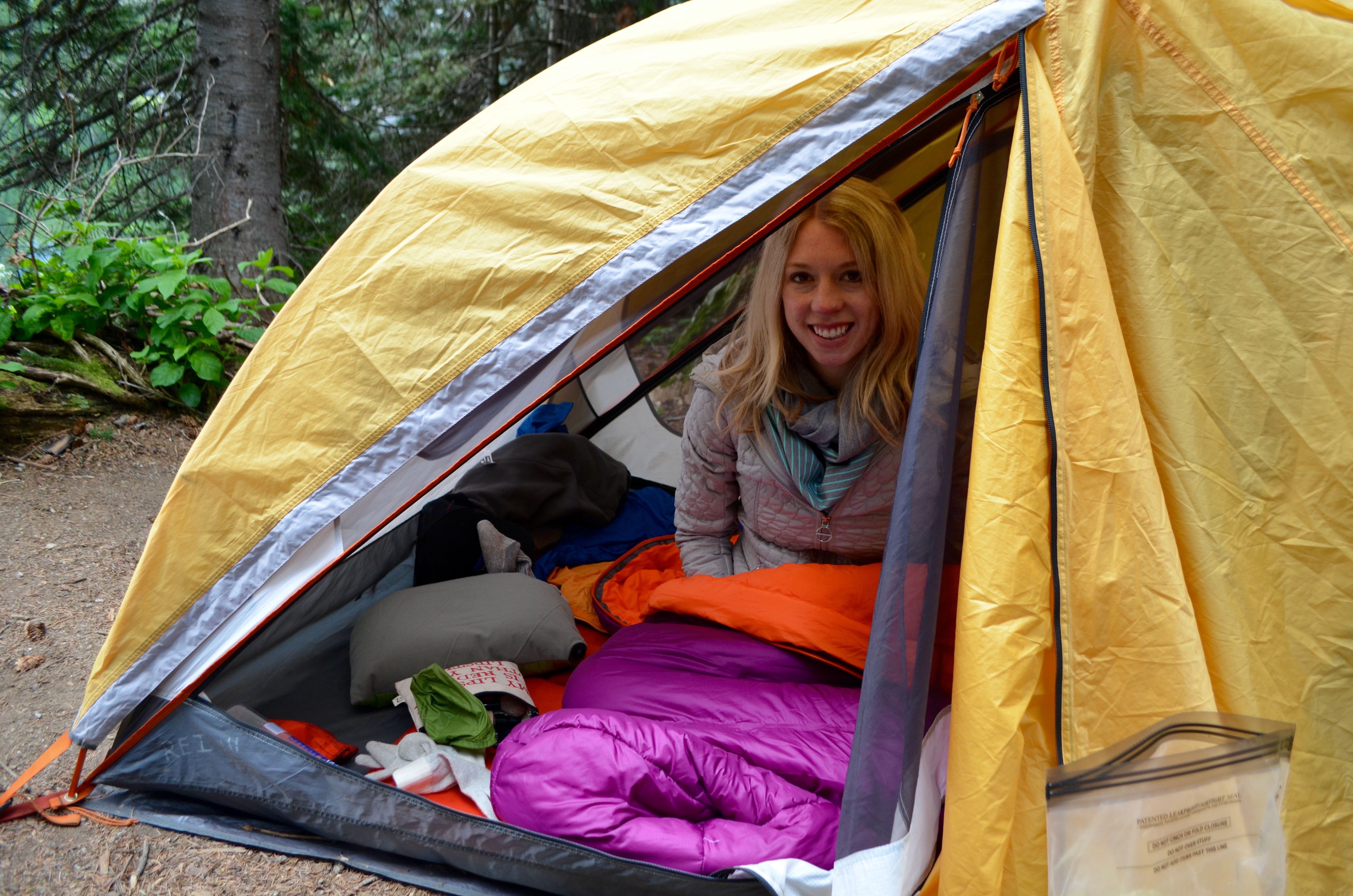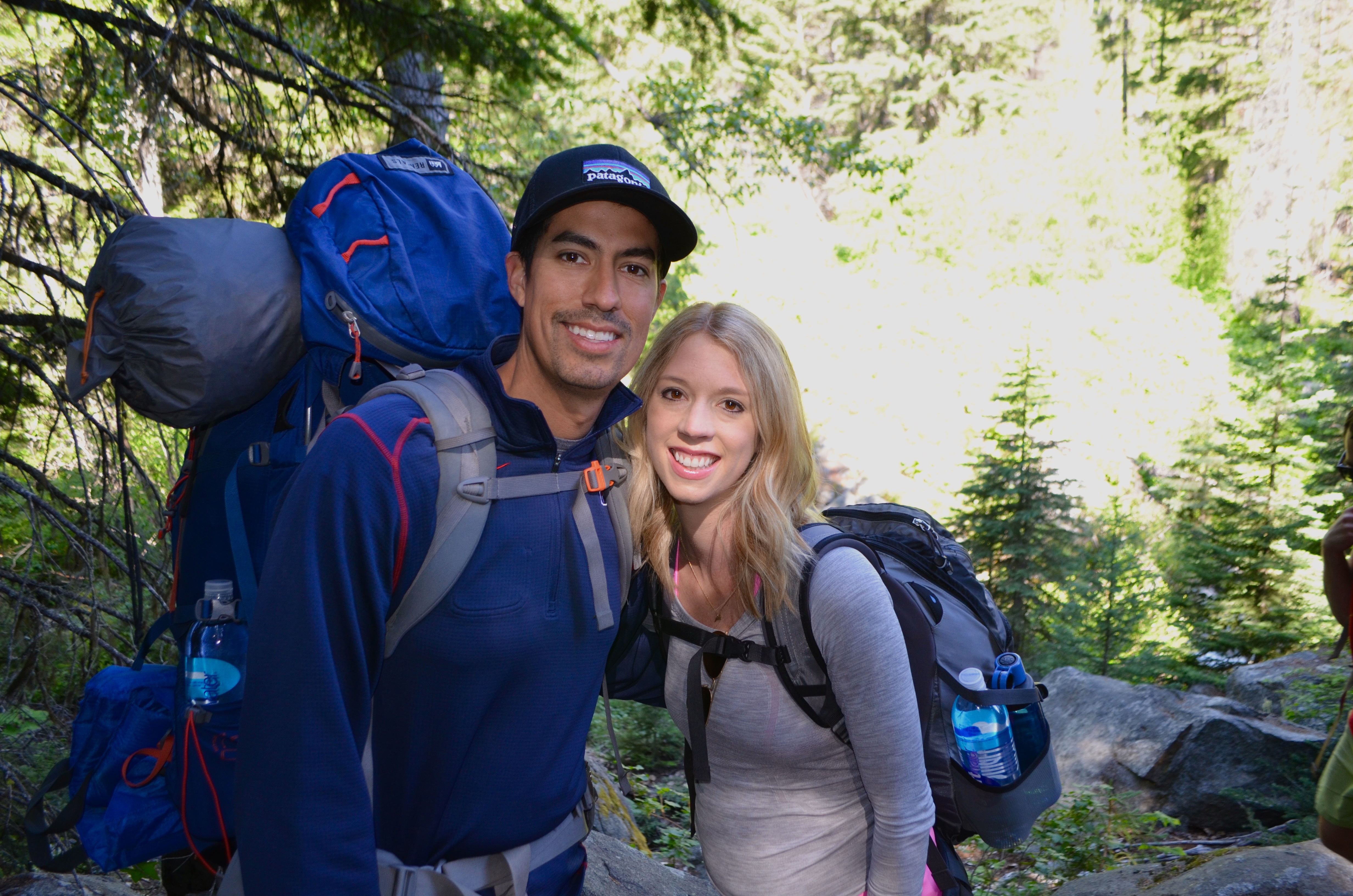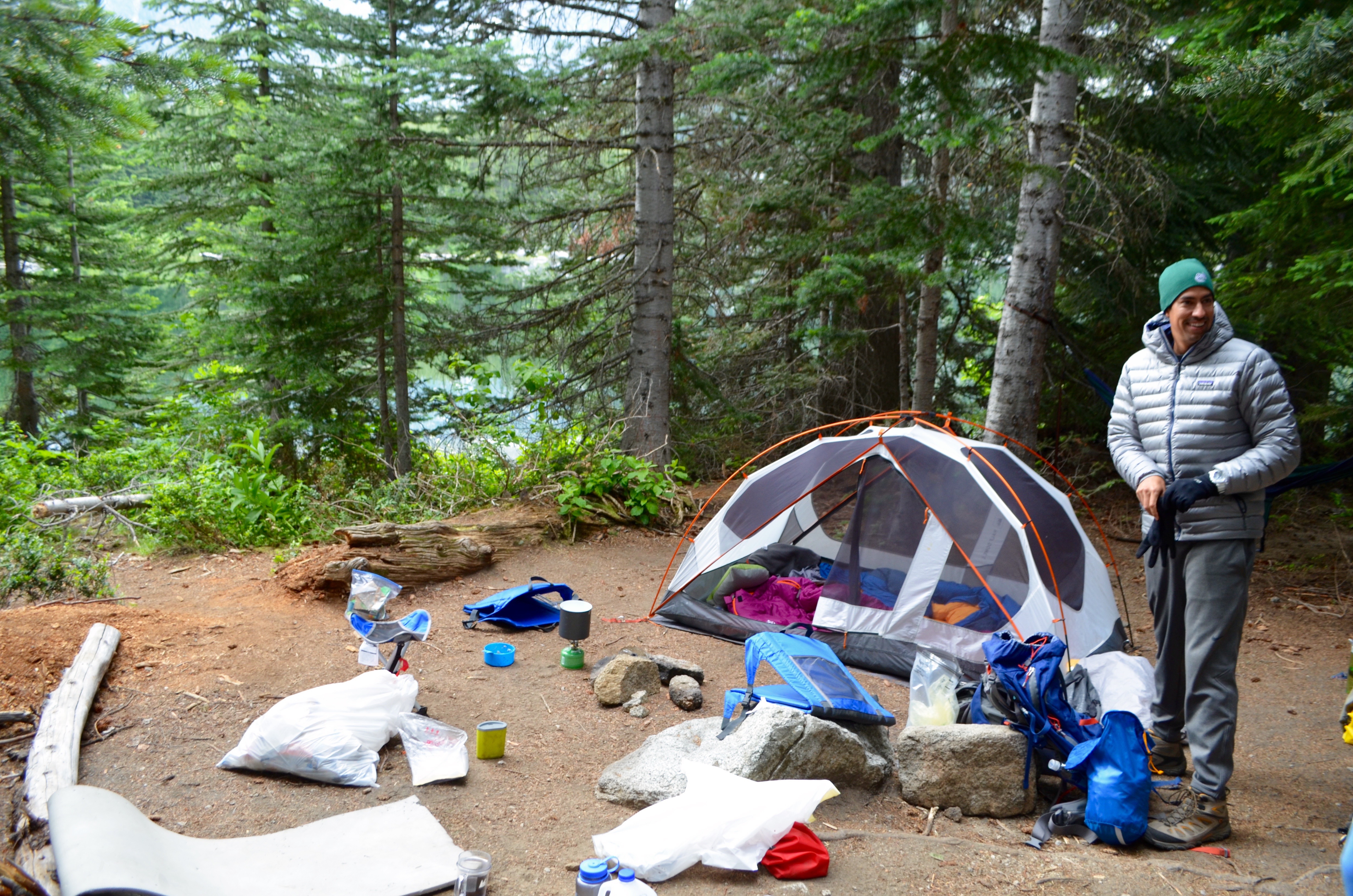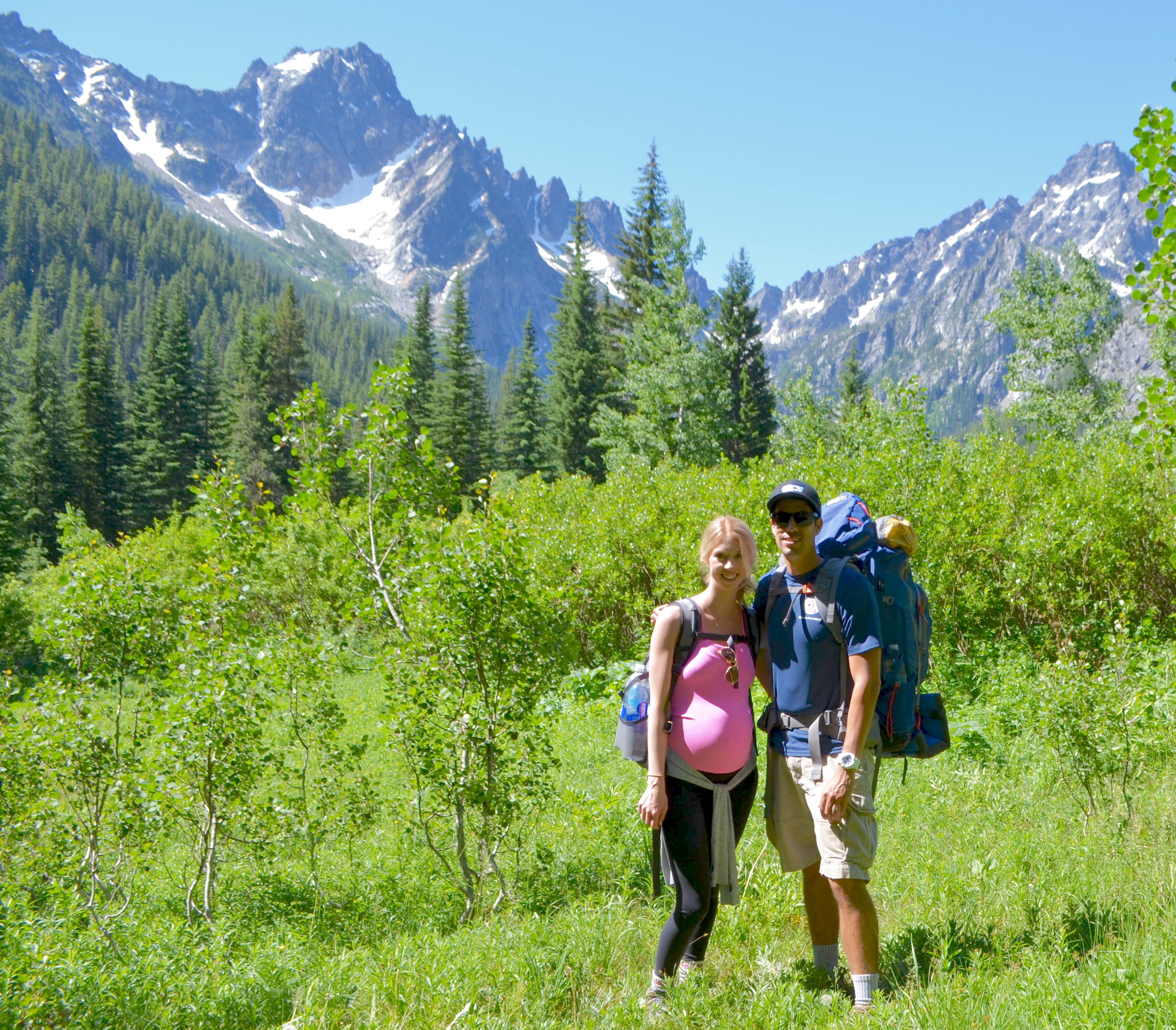 We left Friday night and and stayed in a hotel outside of Leavenworth so we could get an early start Saturday morning. We got up at 7am and drove to the trailhead. Four miles of the drive was on a roller coaster dirt road filled with potholes. We finally got our hike started around 8:30am. The hike was strenuous but not overly difficult with a 1600 ft elevation gain over 4.6 miles. I had to take more breaks than I normally would have being 6 months pregnant. I have to give a huge thanks to my husband who carried all our heavy gear (tent, sleeping bags & whatever else we could fit in his huge 3 liter backpack). I borrowed a friend’s day backpack which was much smaller but we still packed it full of what we could.