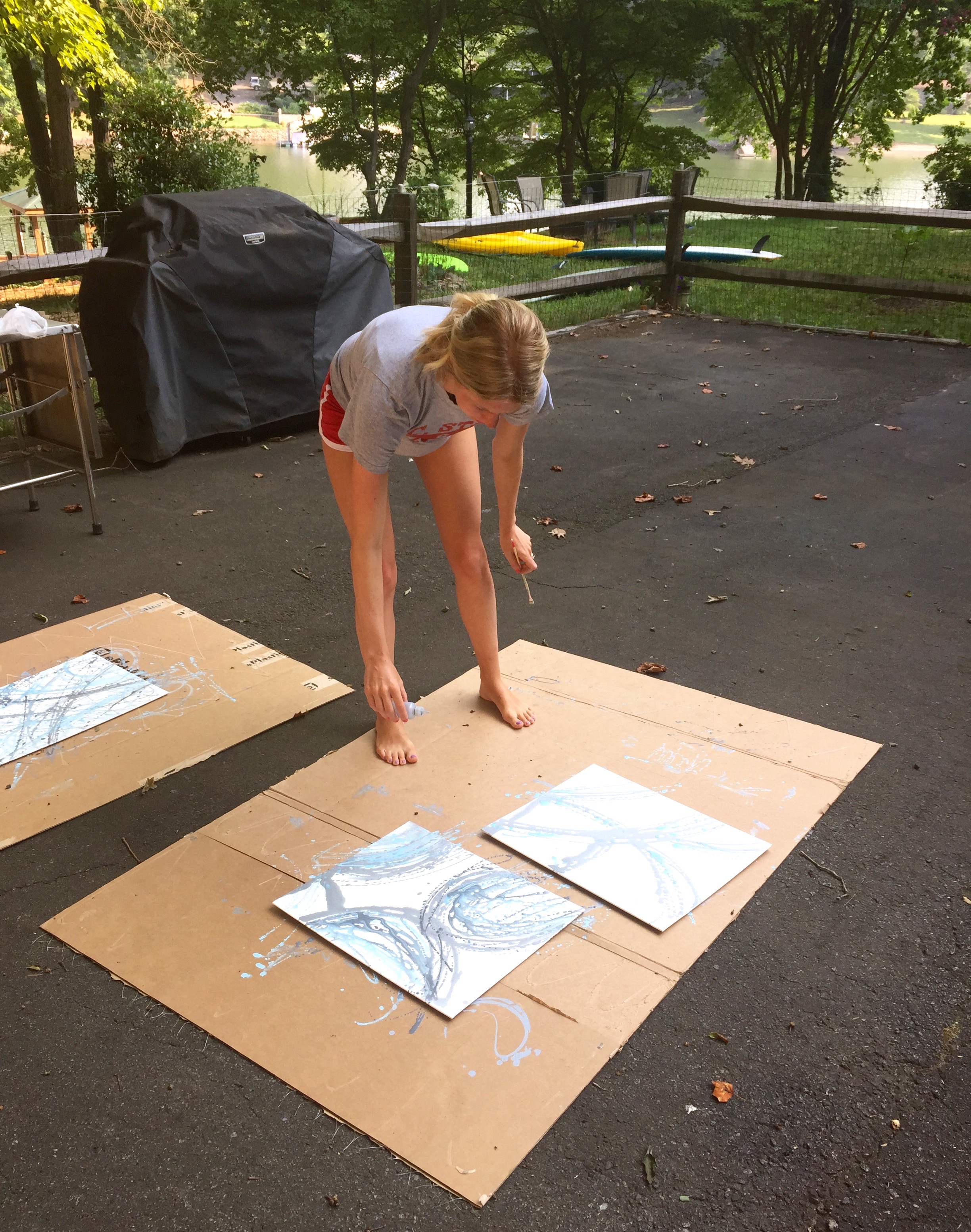 I spent my last day painting some canvases for our future nursery (that we don’t have). Right now we live in a glorified studio open one bedroom apartment with about 500 sq ft. Our lease is up in September so we have started to look for places to live but not sure what our living situation is going to be but I still wanted to make some paintings. My best friend and her two little ones came up to spend the day with us paddle boarding and playing on the lake one last time.