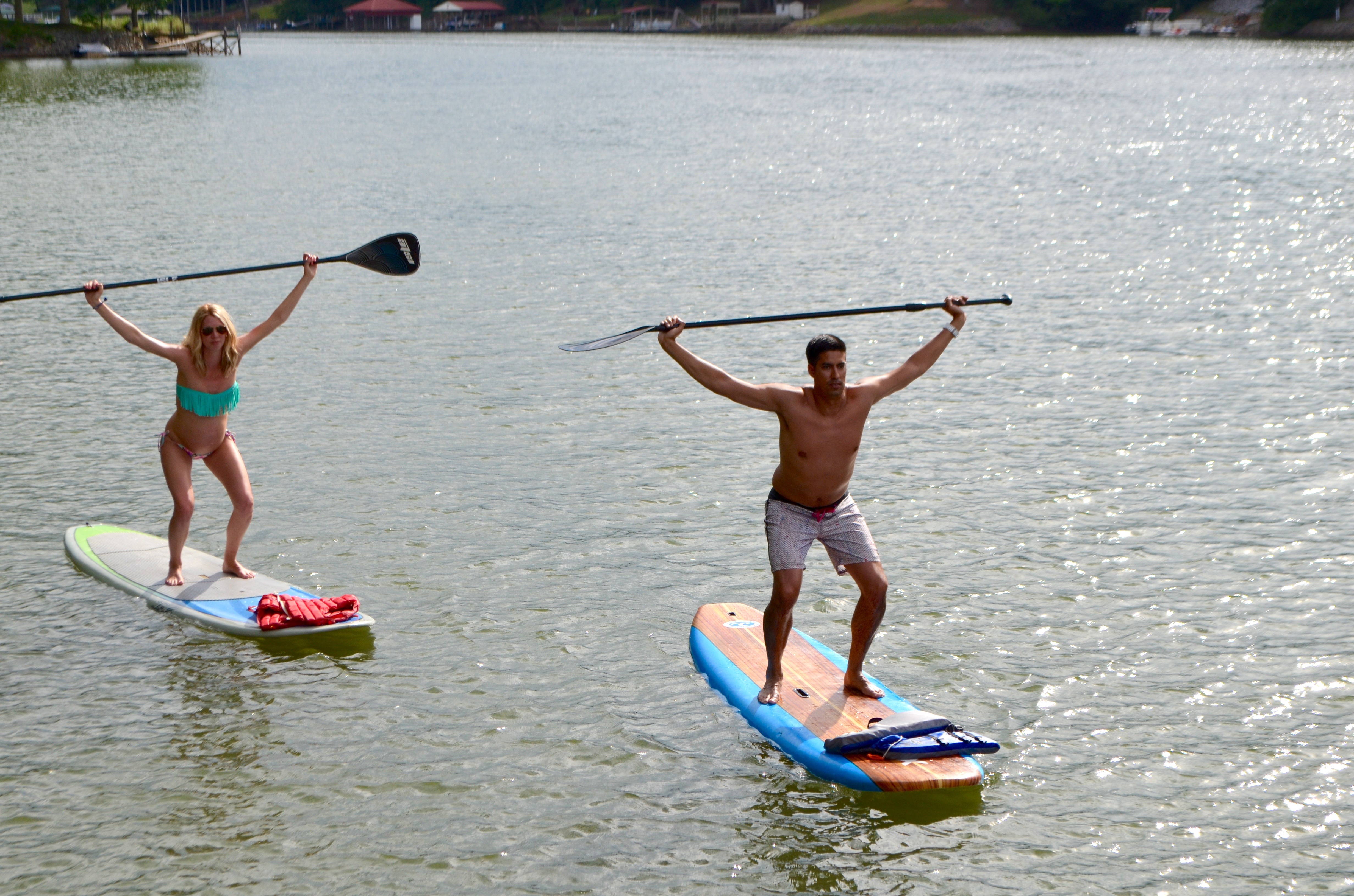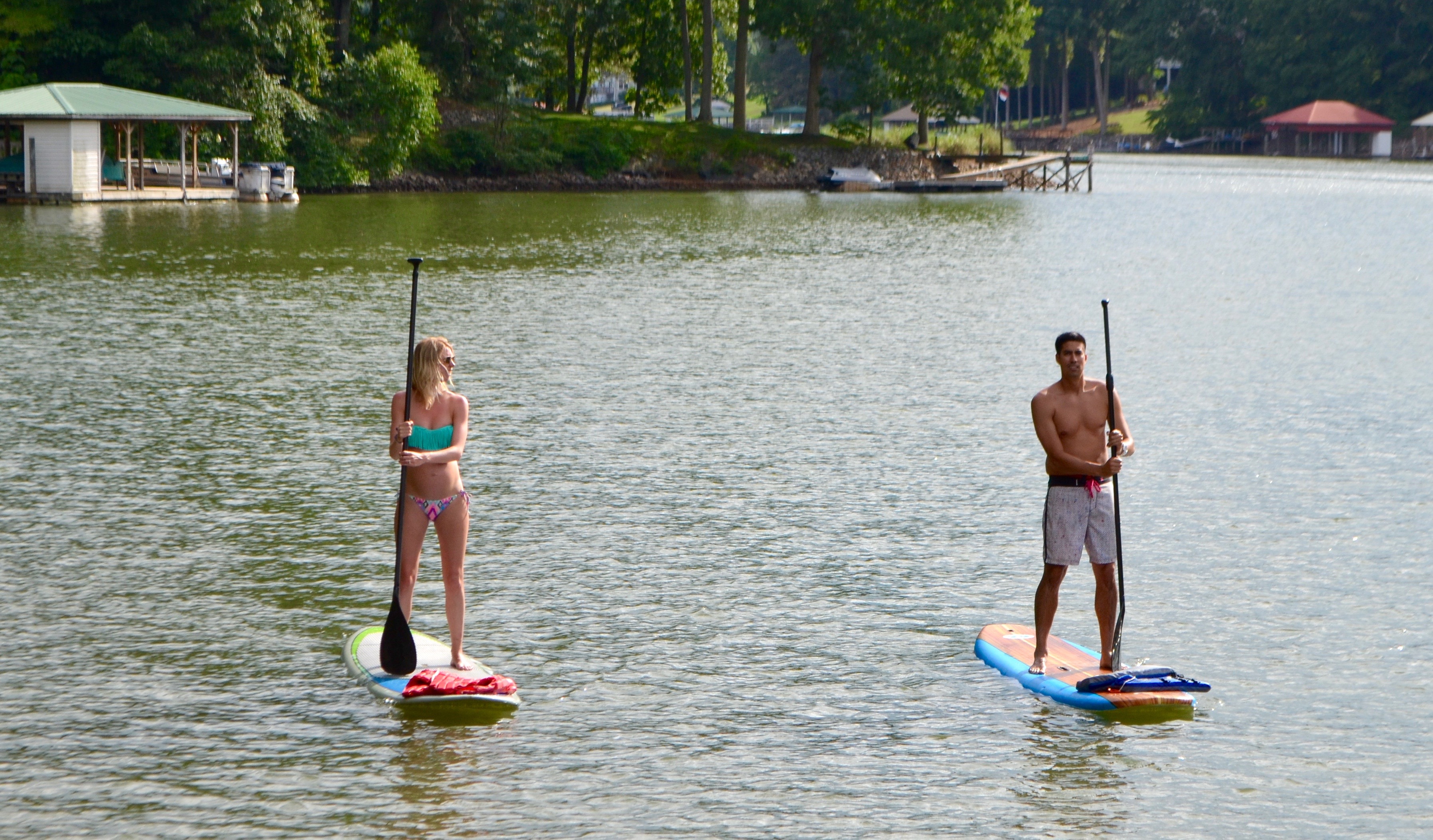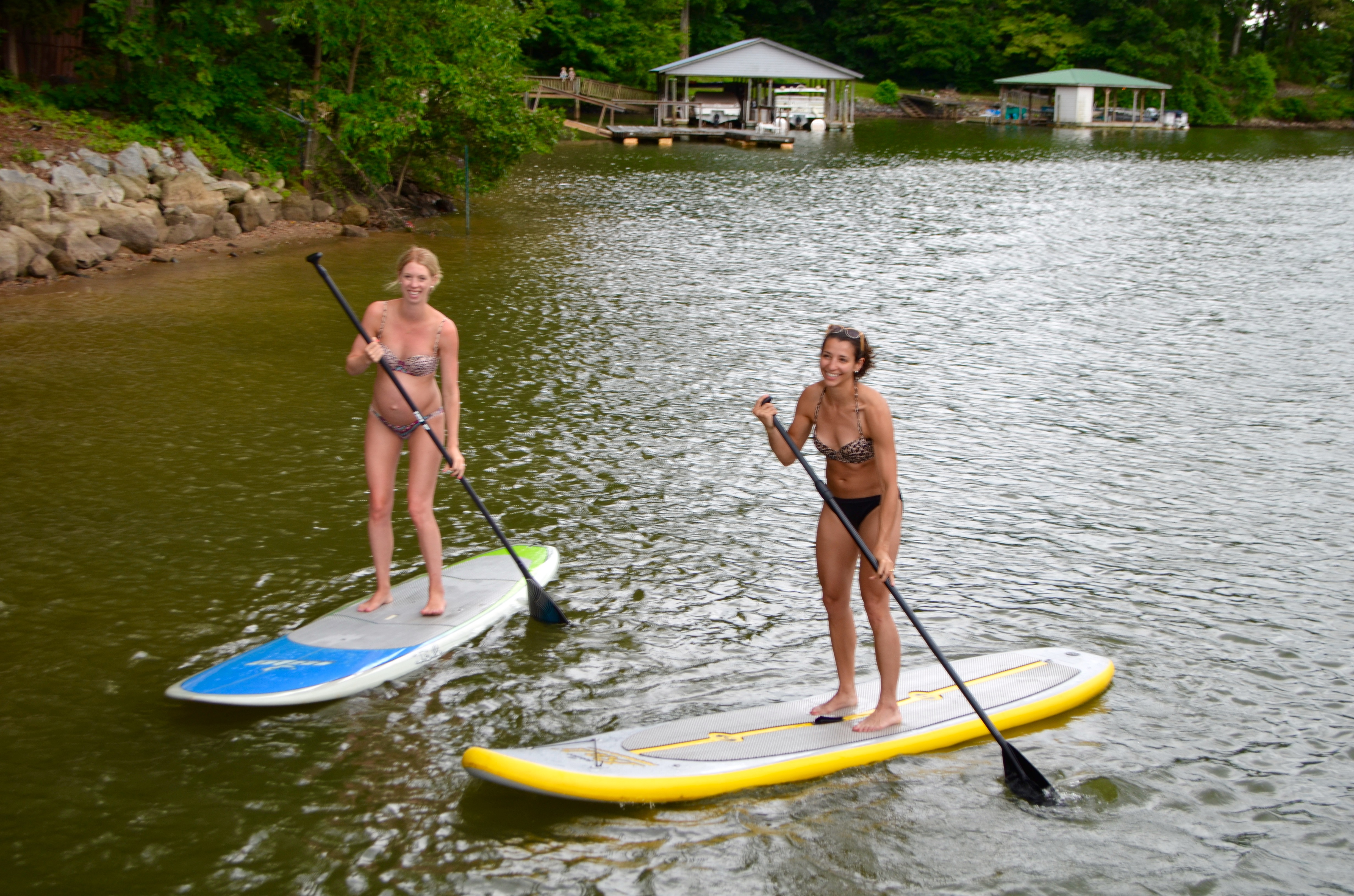 Paddle boarding. No headstands or yoga moves for me this year. A few squats for a mini workout with the hubby.