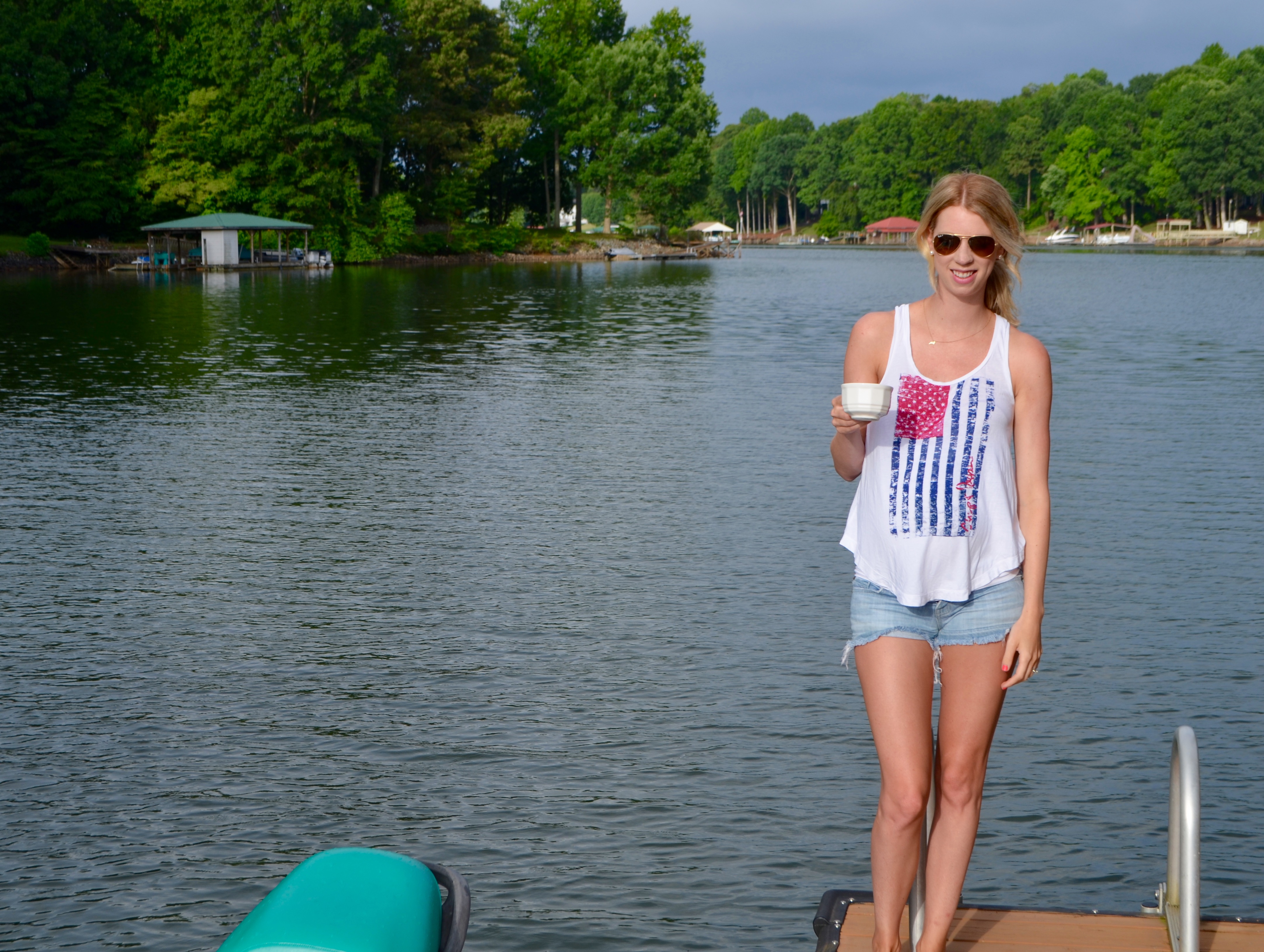 4th of July! Spent the morning drinking my hot tea on the dock watching the boys fish.