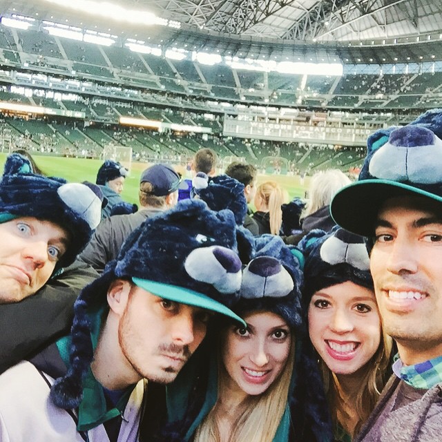 Another weekend comes to an end. Friday night, we drove out to Bellevue to eat at our favorite Mexican restaurant to celebrate Ryan passing the bar and being sworn in on Thursday. Saturday, we slept in a little and then started our day off by walking down to Pioneer’s Square. We spent the afternoon eating and drinking at the German bar Altstadt. Around 4, we left to walk over to our first Mariner’s game. We wanted to be one of the first 25,000 fans so we could get a free bear hat. It was kuma bear hat night at the Mariners game and thankfully the hats kept us a little warmer at the game. It was cold & we weren’t exactly dressed for the cold temps so after the game, I couldn’t wait to get somewhere warm. We stopped at the hotel bar, Bookstore. It was a round of Irish coffees for everyone else & a hot chocolate for me.