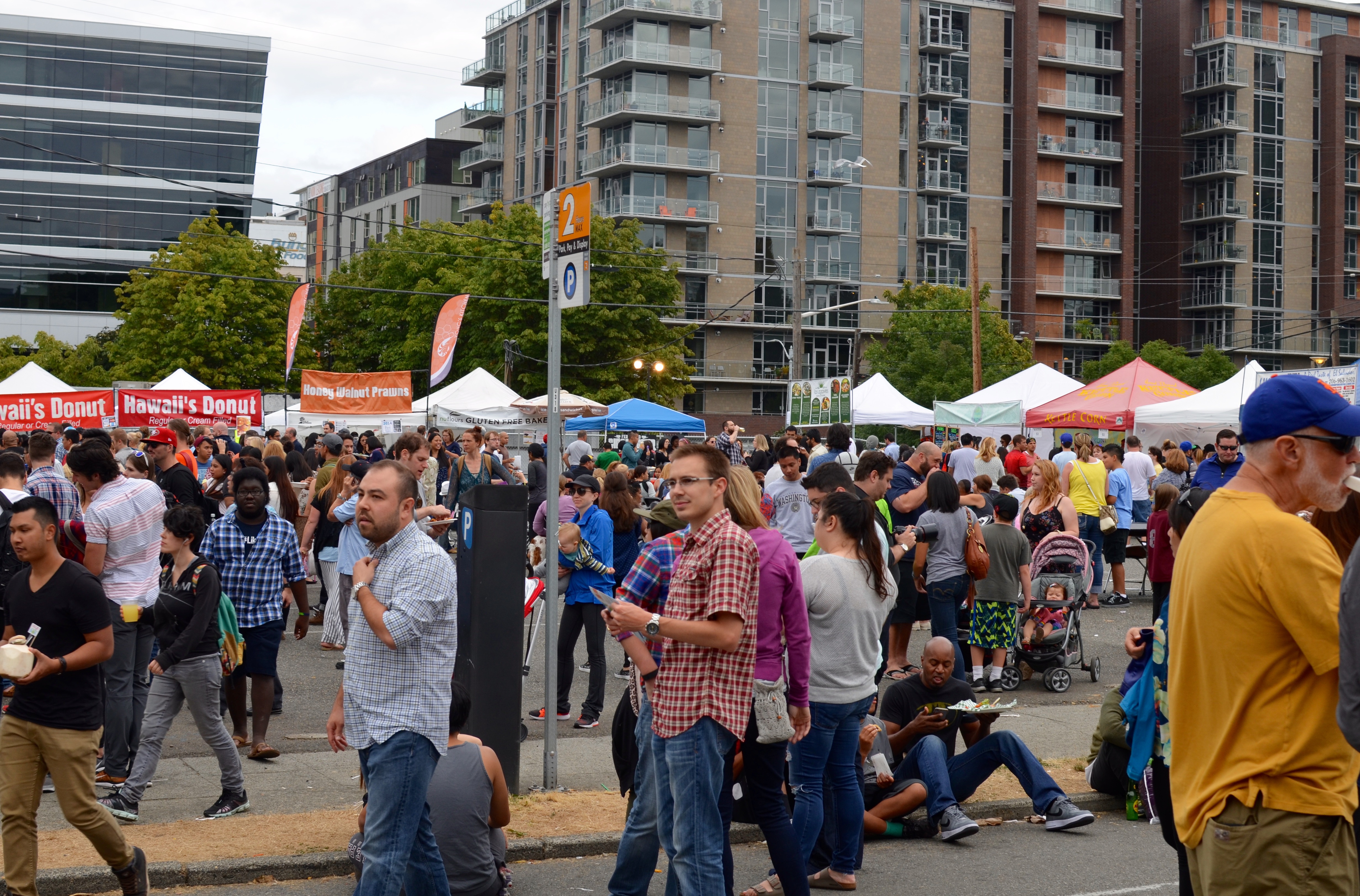 Well the food might not have been the healthiest but it it sure was good! We ventured out to the Seattle Street Food Festival Saturday during the day. The festival started on Friday and ran through Sunday. Admission was free and featured Food Trucks from all over the Northwest along with a row of pop-up craft tents. A few of my favorite jewelry and t-shirt tents from the Fremont market had pop-up tents at the festival. We arrived around 3 and the festival was packed. My only complaints about the event were the lines were long at some of the food trucks and many of the food trucks had run out of food by 5pm.